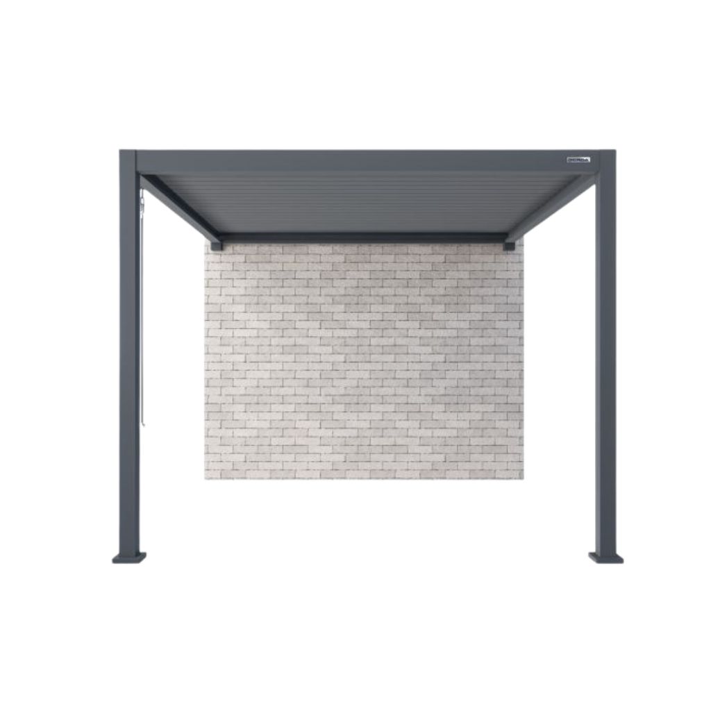 Pergola GERDA SOLEO 4 × 3 m to solidna konstrukcja aluminiowa, która zapewnia ochronę przed słońcem, deszczem i śniegiem dzięki wytrzymałości do 150 kg/m². Jej nowoczesny design w kolorze antracytu lub bieli doskonale komponuje się z różnymi aranżacjami tarasów i ogrodów. Model dostępny jest jako pergola wolnostojąca (4 słupki) lub montowana do ściany (2 słupki), a manualnie regulowane lamele umożliwiają precyzyjne sterowanie ilością światła. Komfort korzystania można dodatkowo zwiększyć dzięki roletom ZIP SCREEN, które chronią przed wiatrem i zapewniają większą prywatność.