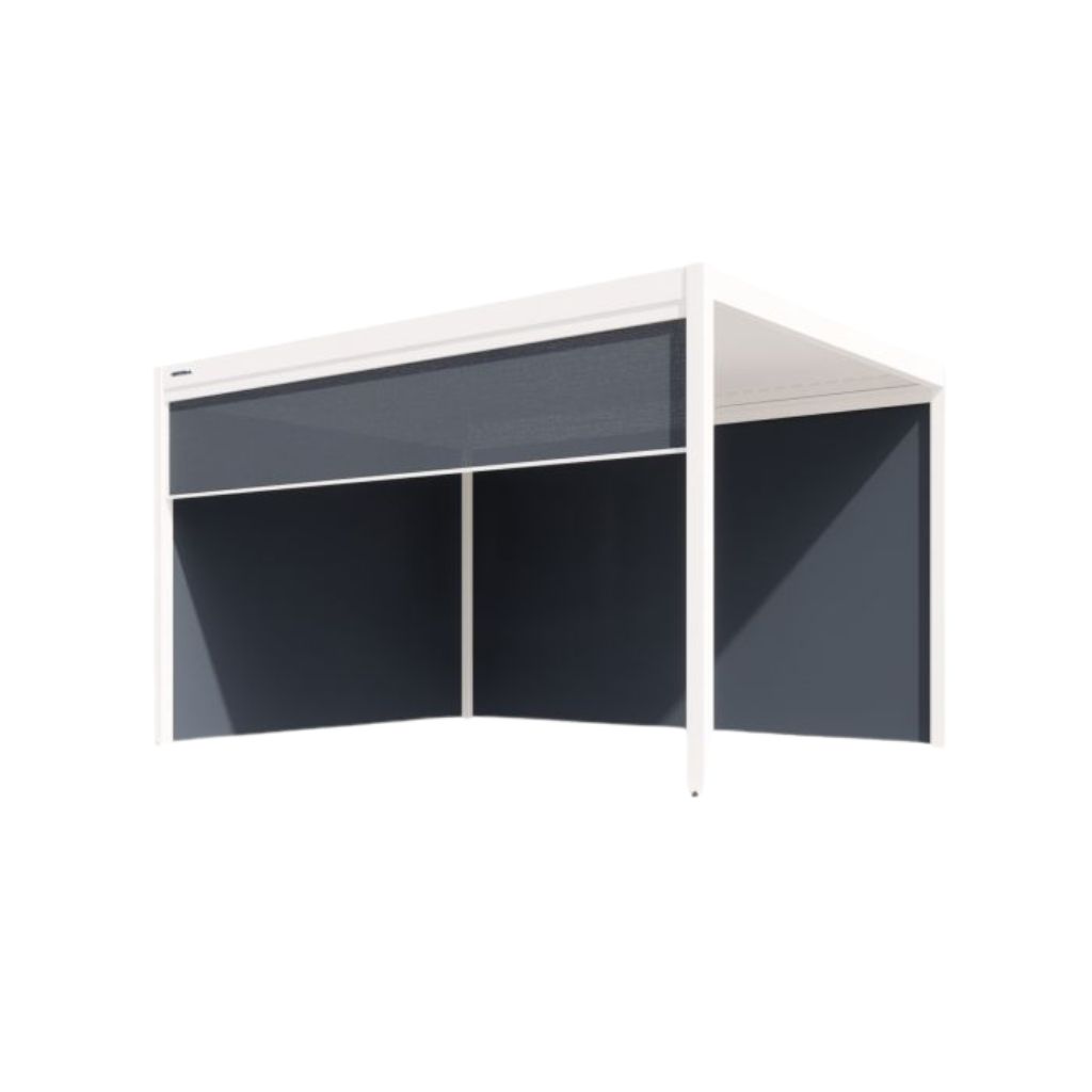 Roleta ZIP SCREEN o 5% przezierności skutecznie zacienia, chroni przed słońcem, wiatrem i deszczem, a dzięki solidnej tkaninie i stabilizatorowi działa płynnie i jest odporna na warunki pogodowe. Idealnie uzupełnia konstrukcję pergoli.