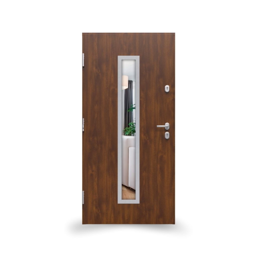 • Naturalna elegancja – wykończenie w kolorze dębu szlachetnego i szyba Mira Star podkreślają prestiżowy wygląd drzwi.