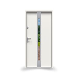 Skrzydło o grubości 75 mm zapewnia izolacyjność cieplną na poziomie Ud = 1,0 W/m²K, co gwarantuje niższe rachunki za ogrzewanie oraz stabilny komfort termiczny. Ościeżnica DuoTherm z windstopperem i aluminiowy próg z uszczelką chronią przed wiatrem i wilgocią, a zawiasy 3D umożliwiają regulację w trzech płaszczyznach bez konieczności zdejmowania drzwi.