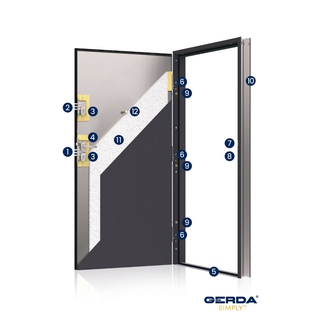 GERDA SIMPLY PŁASKIE – drzwi wejściowe Antracyt z anodą srebrną
