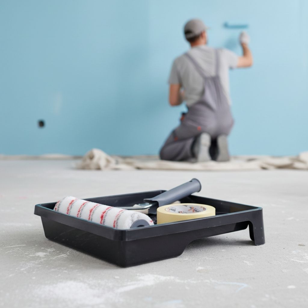 Wałek SYNTEX doskonale sprawdza się przy malowaniu farbami emulsyjnymi i lateksowymi, zapewniając równomierne pokrycie powierzchni bez smug. Pędzel angielski 50 mm ułatwia precyzyjne wykończenia i malowanie trudno dostępnych miejsc, a taśma malarska pozwala zabezpieczyć powierzchnie przed zabrudzeniem. Duża kuweta umożliwia wygodne nabieranie farby, co przyspiesza i usprawnia pracę.
