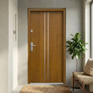 Drzwi GERDA SIMPLY TOKIO 1 RC2 INSERT INOX DĄB SZLACHETNY ANODA SREBRNA